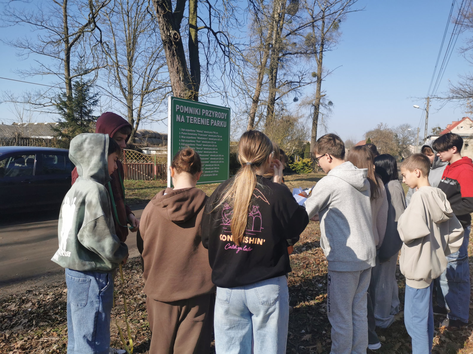 Następnie wykonali pomiary, określili lokalizację oraz zaproponowali nazwy imion drzewom, które zaznaczyli na planie parku. Wytypowane okazy zostały wskazane do wpisu do Rejestru Pomników Przyrody. Przygotowana dokumentacja została przekazana na ręce burmistrza, pana Tomasza Szramy.