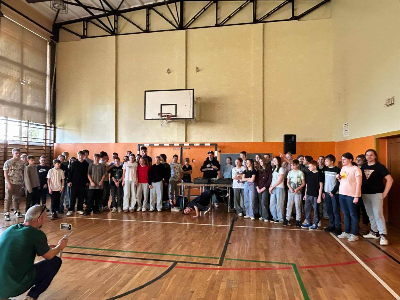 29 października o godz. 11:00 uczniowie klas VI i VII Zespołu Szkolno-Przedszkolnego w Rożnowie wzięli udział w wyjątkowych zajęciach zorganizowanych przez Fundację Ewy Johansen „Talent”. Spotkanie odbyło się w ramach nowatorskiego programu profilaktycznego „Break Addiction – przełam uzależnienie”, który w niecodzienny sposób łączy edukację o zagrożeniach związanych z uzależnieniami z aktywnością fizyczną i tańcem breaking (break dance) – dyscypliną, która od 2024 roku znajduje się w programie olimpijskim.