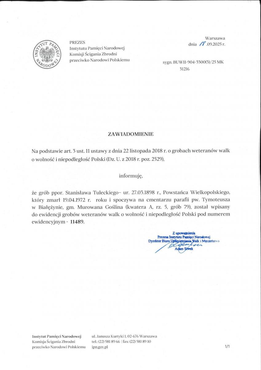 Cztery kolejne groby naszych bohaterów wpisane do ewidencji IPN