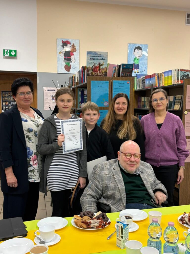 18 listopada 2025 r. naszą szkołę odwiedził senator Jan Filip Libicki. Celem wizyty było wręczenie dyplomów oraz okolicznościowych upominków wszystkim uczestnikom senackiego konkursu “List do Taty”. Senator pogratulował uczestnikom konkursu: Mai Kurach i Adamowi Kroteckiemu, przekazał też gratulacje Marii Świstek.