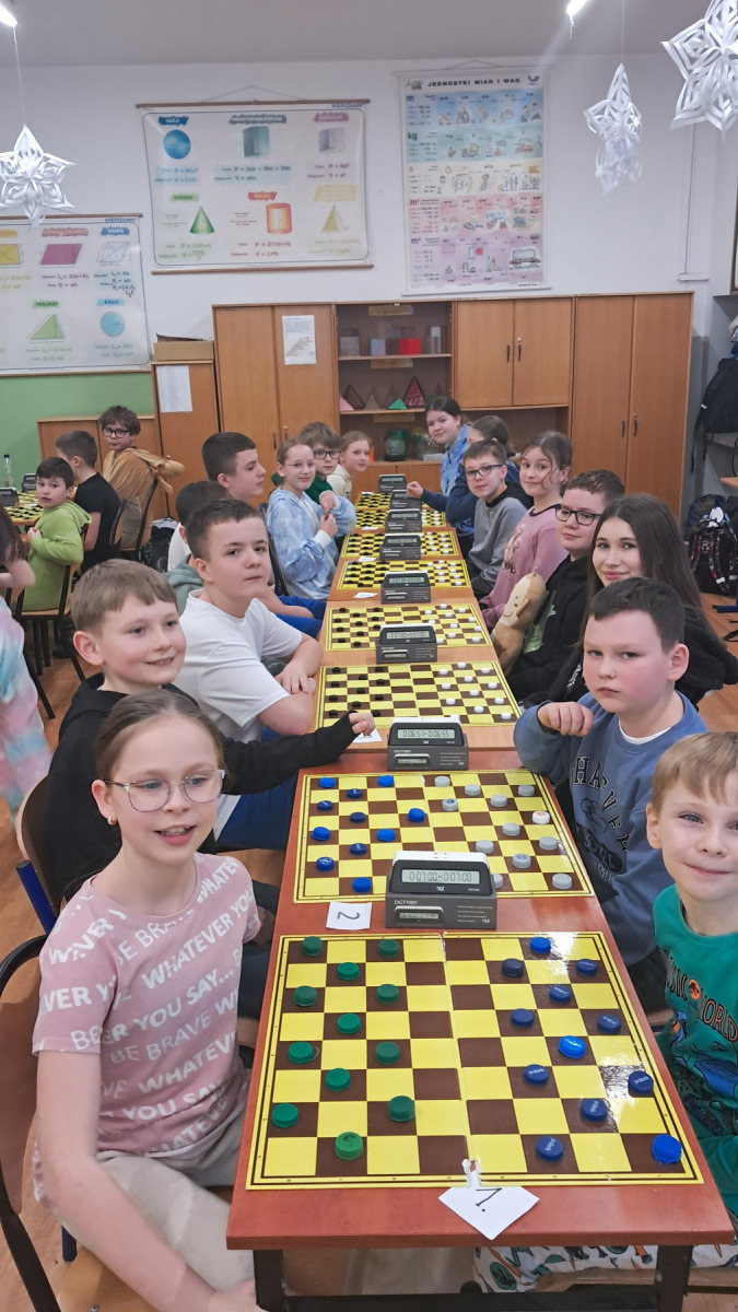 Dnia 13 lutego 2026 r. odbył się Szkolny Turniej Warcabowy. W turnieju wzięło udział 24 zawodników i zawodniczek. Turniej stanowił eliminacje szkolne do Powiatowych Mistrzostw w warcabach klasycznych. Wszystkim zawodnikom gratulujemy udziału, a zwycięzcom życzymy powodzenia na mistrzostwach powiatu.